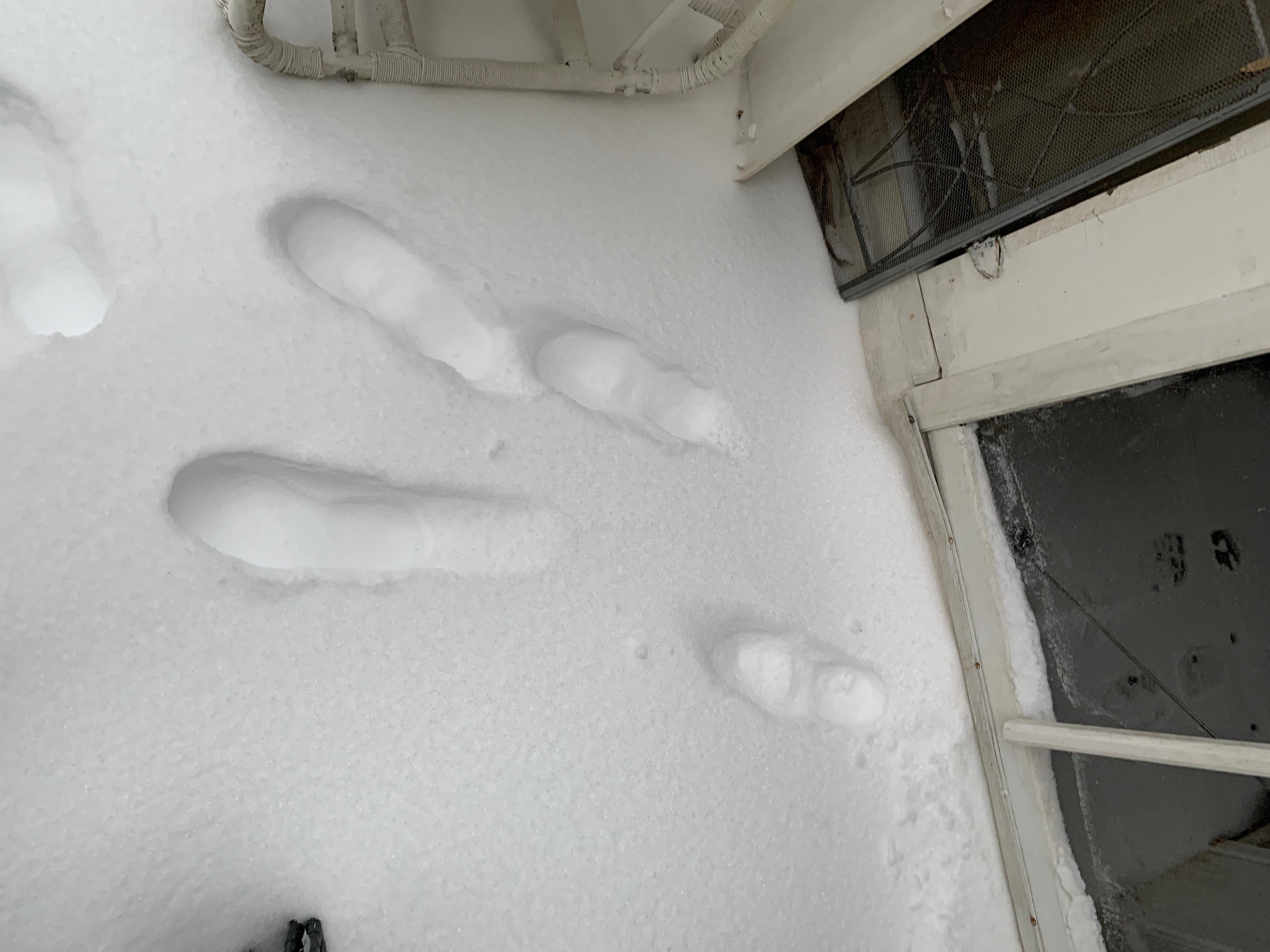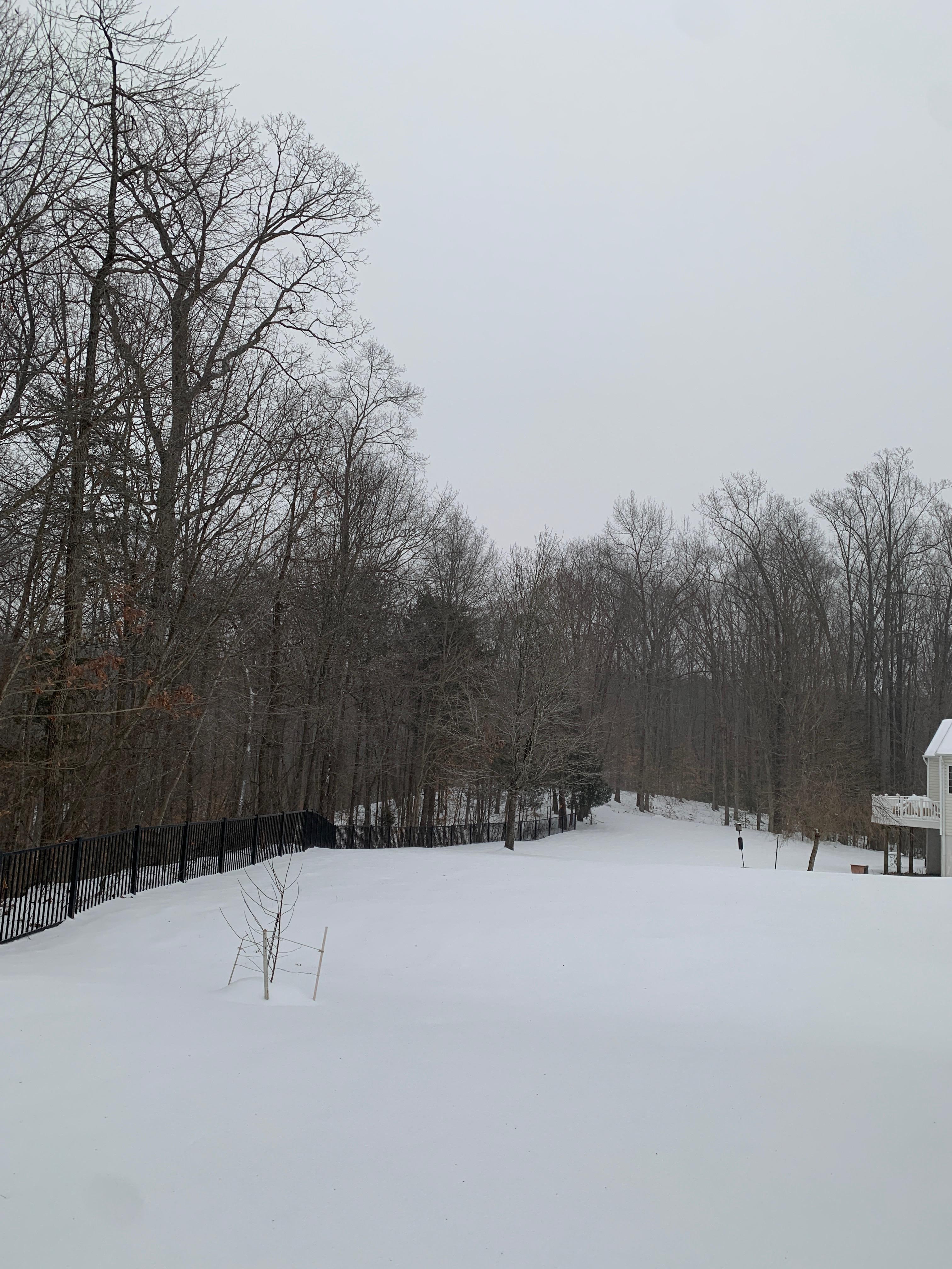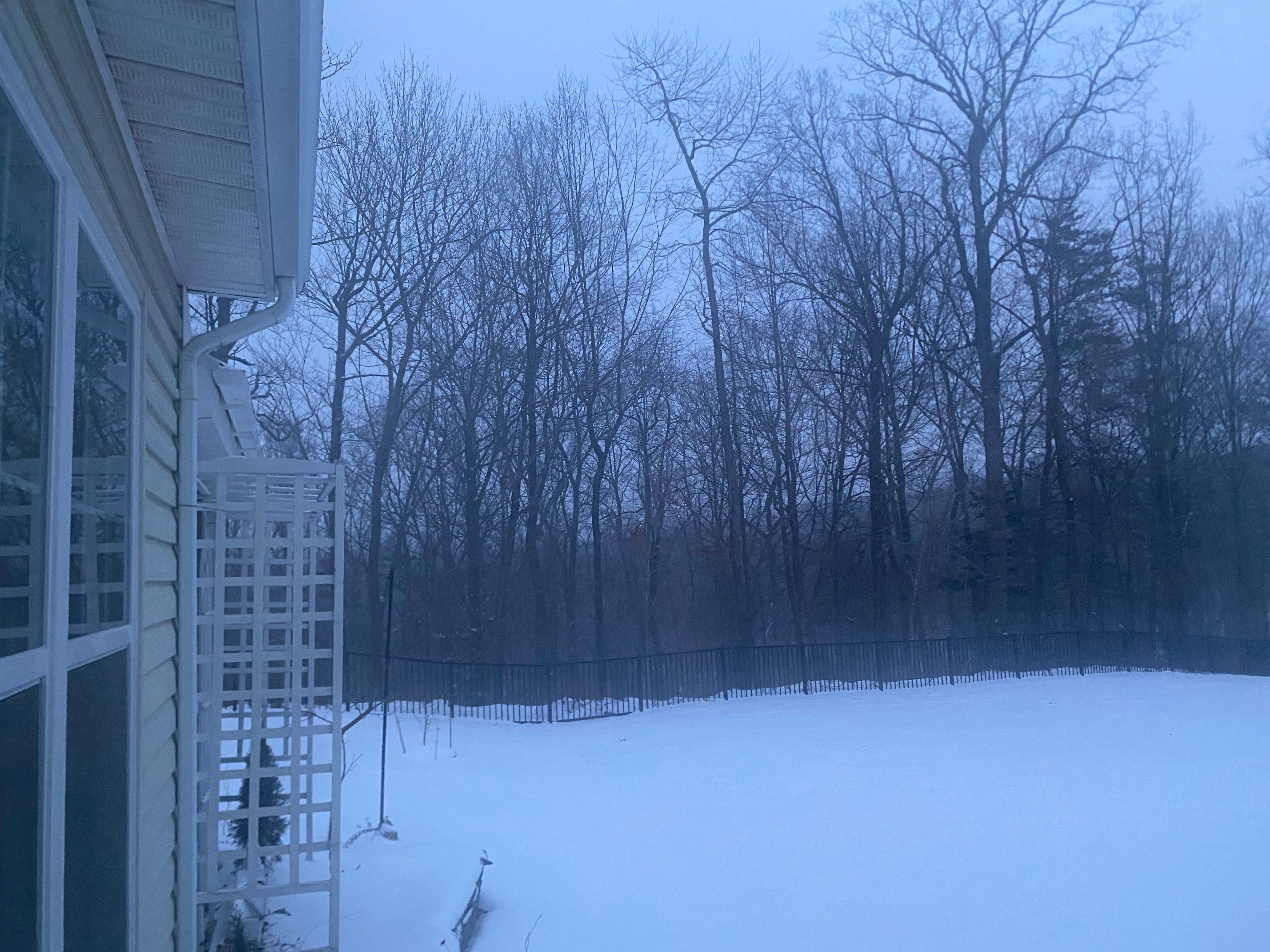 나는 앞 뒷 마당의 눈폭풍속을 걸었다.