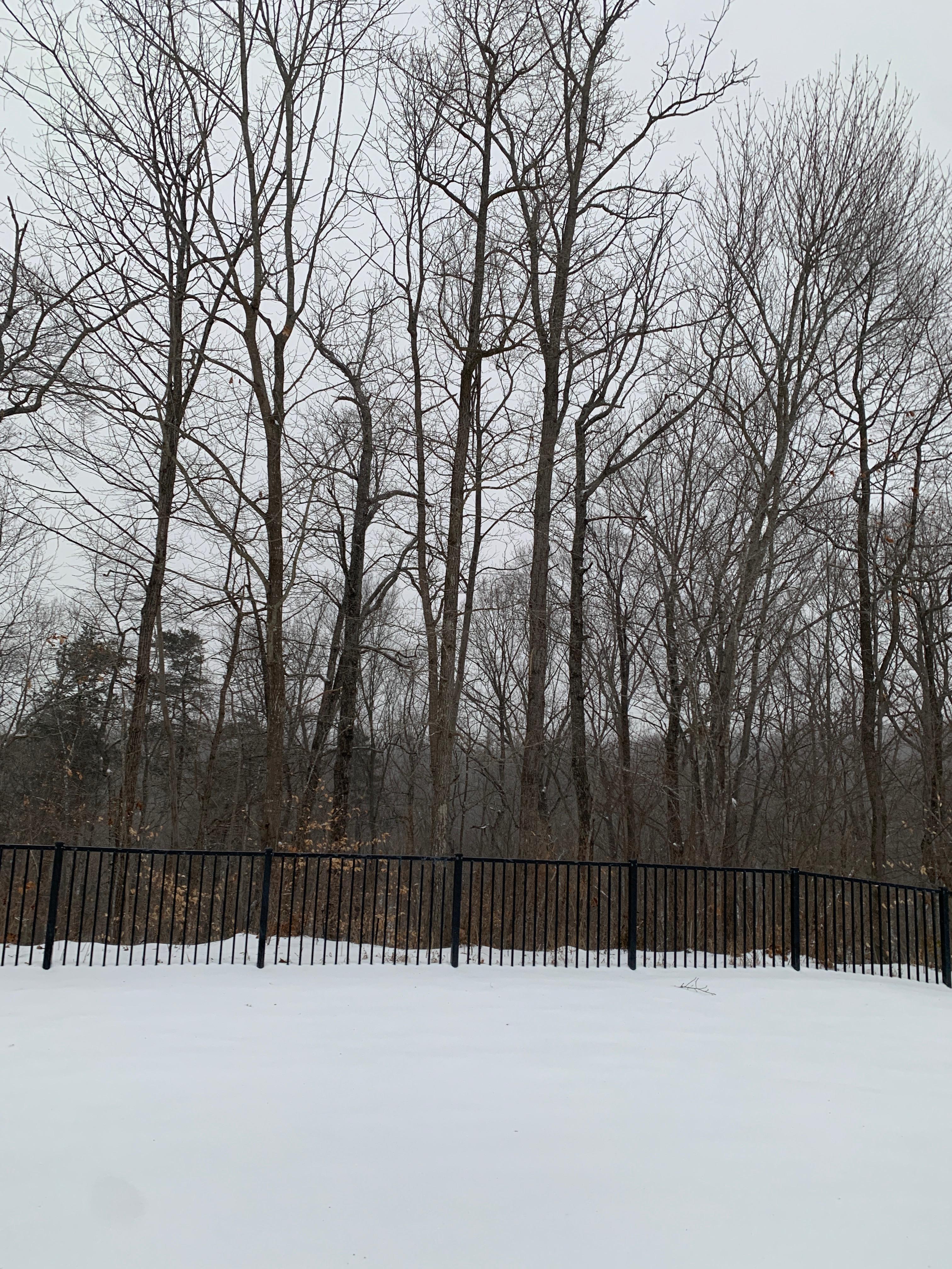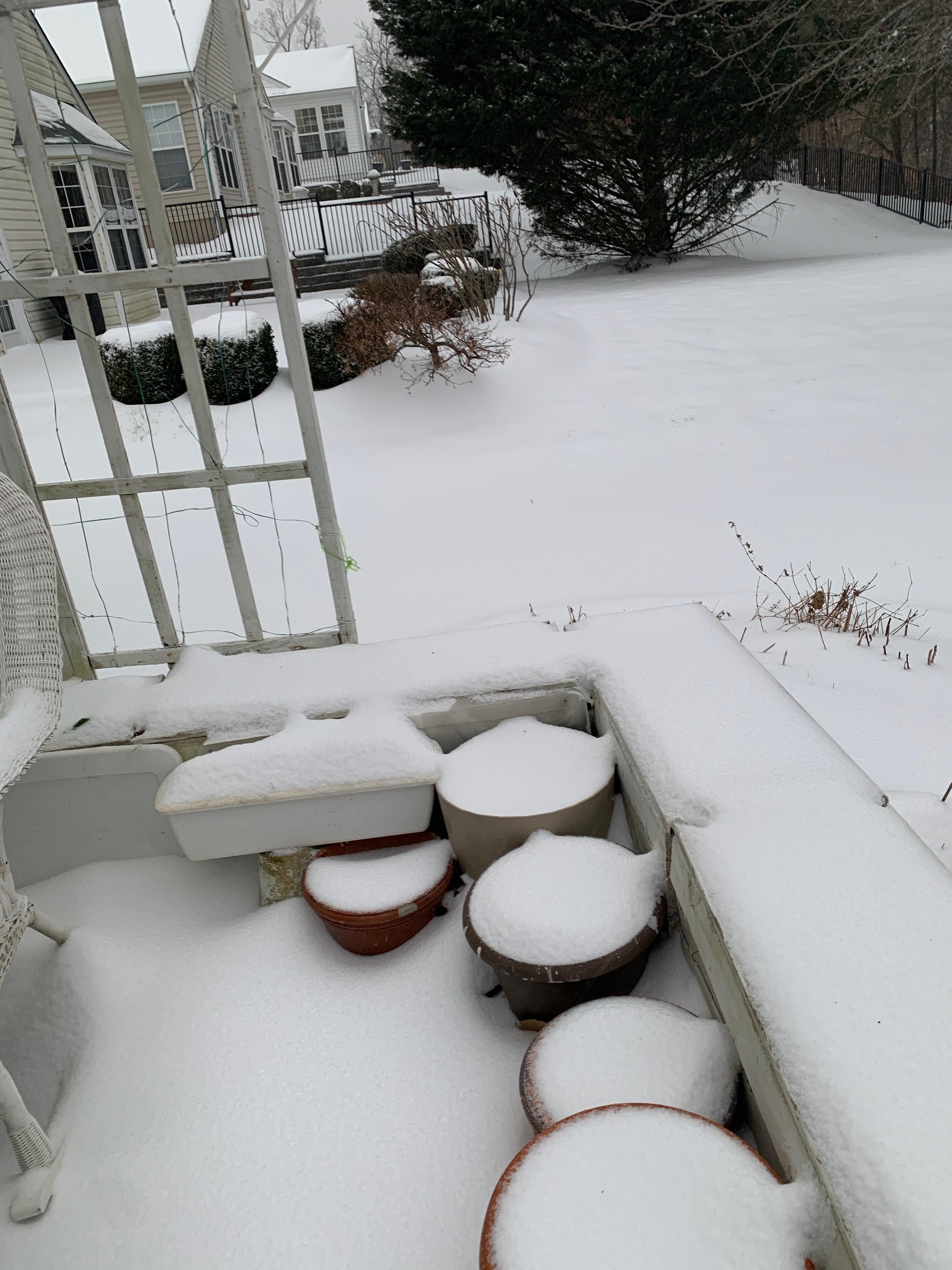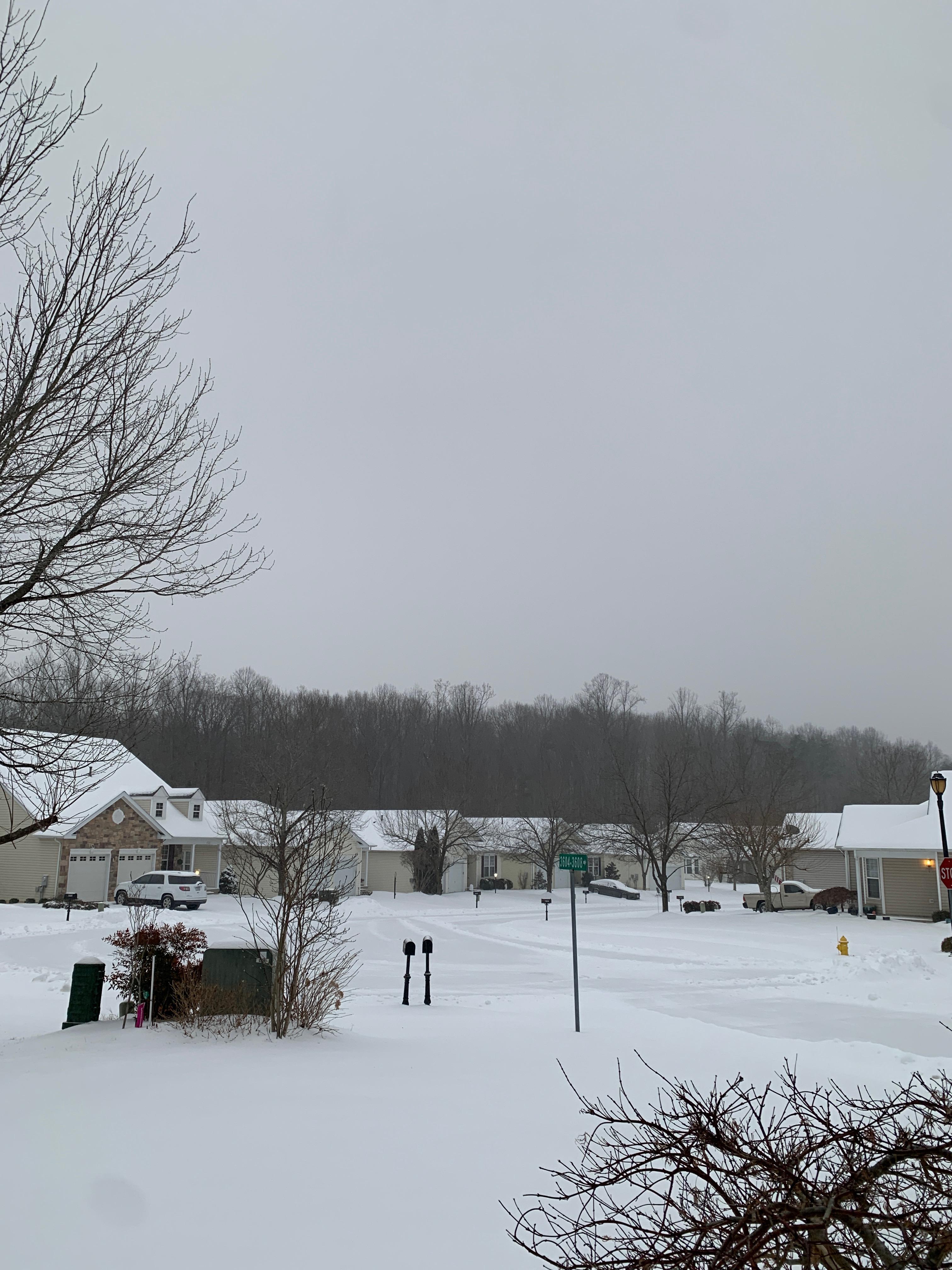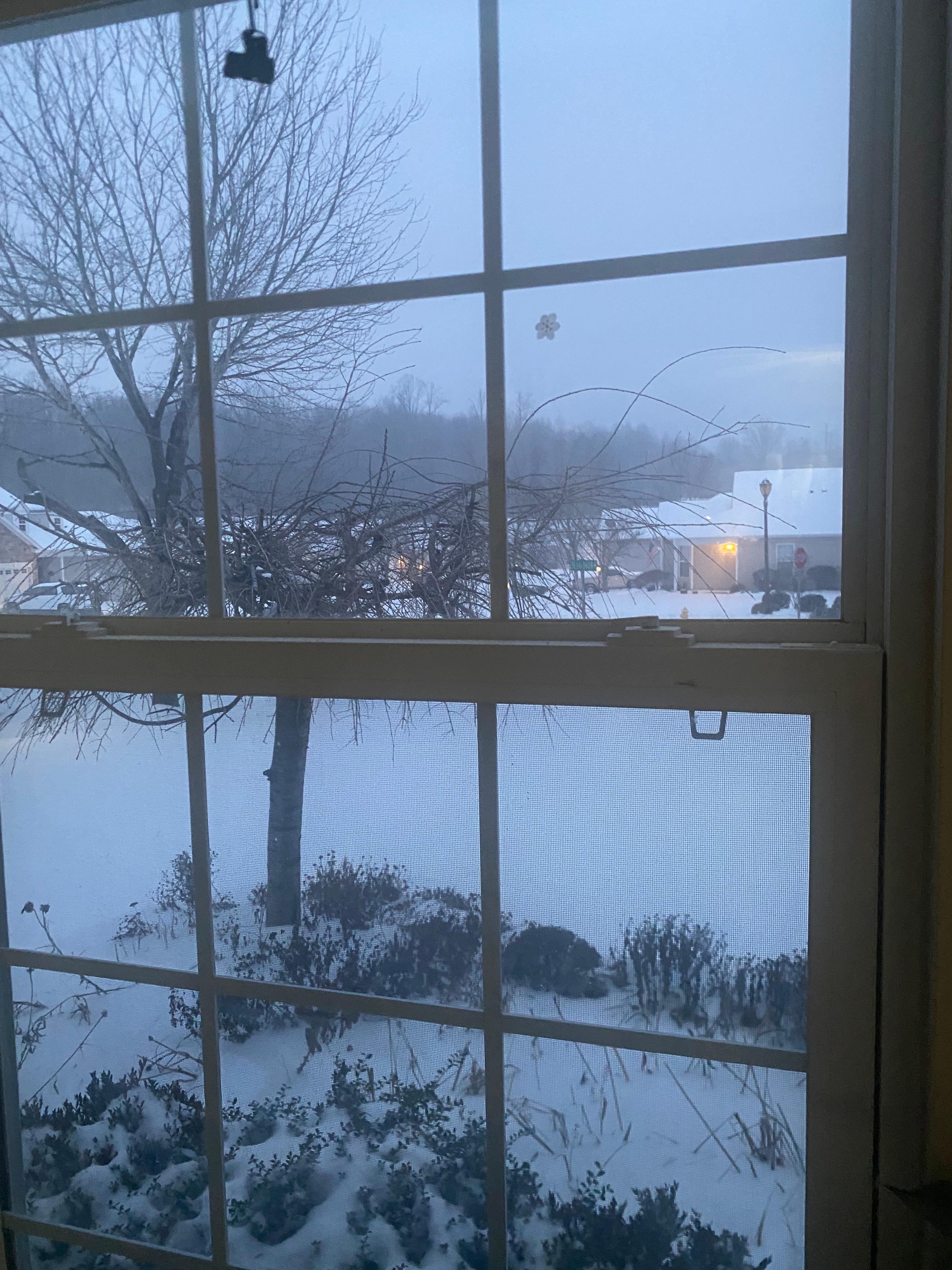 나는 앞 뒷 마당의 눈폭풍속을 걸었다.