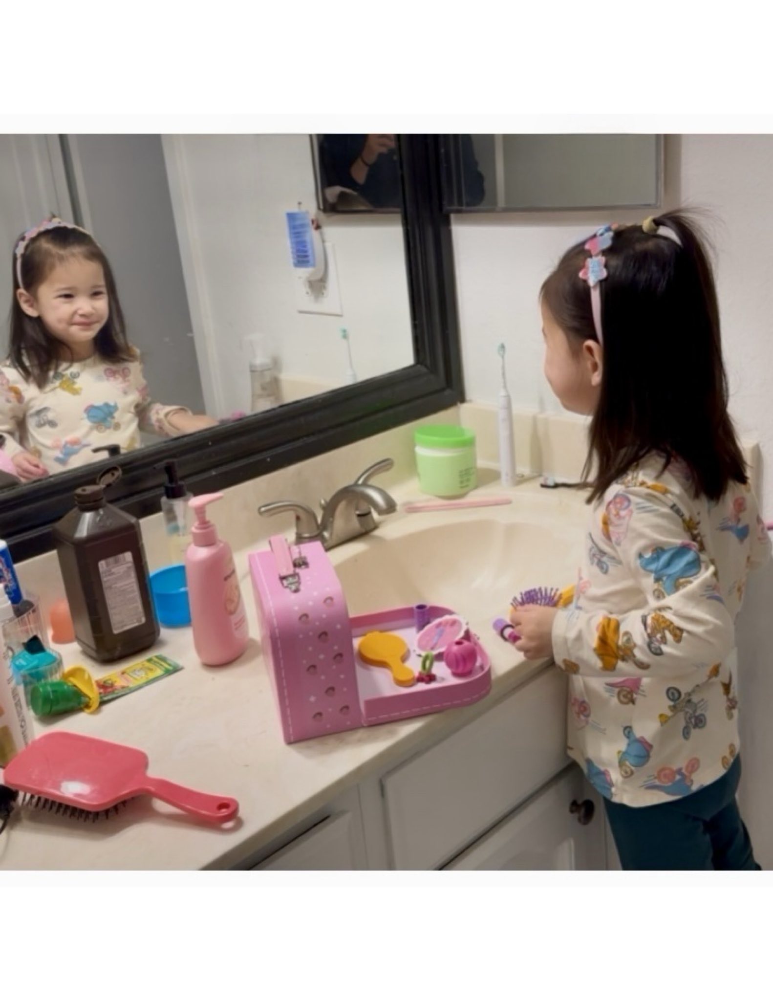 안토넷(4살)이 거울 보는것을 좋아한다.
